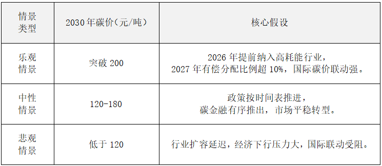 尽管中长期趋势较为清晰,但在政策执行、经济周期和国际环境等多重不确定因素影响下,碳市场运行仍面临阶段性波动风险。不同情景下,碳价路径可能出现明显分化,有必要对潜在风险保持足够审慎。
